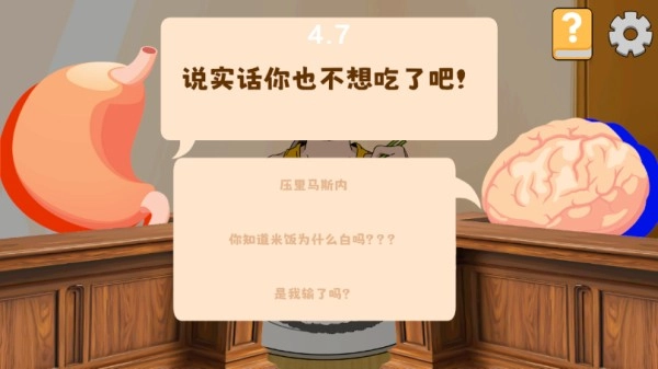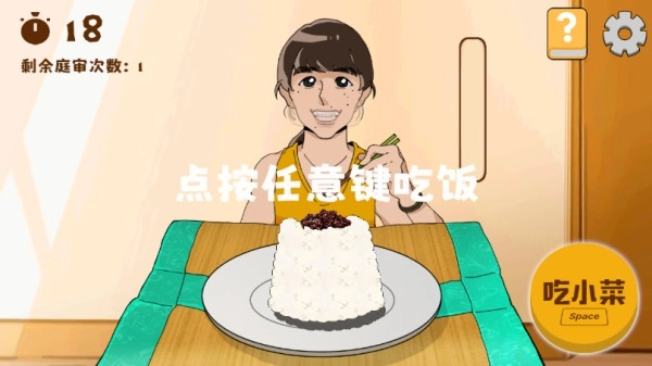 5、玩家需要根据问题做出正确选择,并完成一些小游戏才可以胜诉,继续干饭;