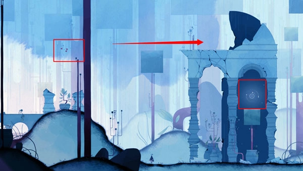 3、触发小石头的动画后一直前进,来到此处,右上方有第一个“备忘录”。