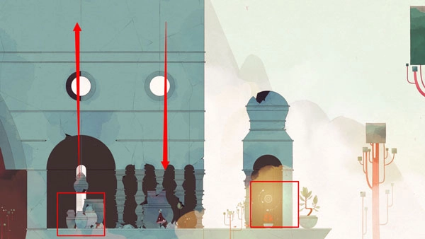 15、先去右边拿刚刚看到的第四个“备忘录”。砸破碎石下来,再利用藏在花瓶里的花瓣上去。