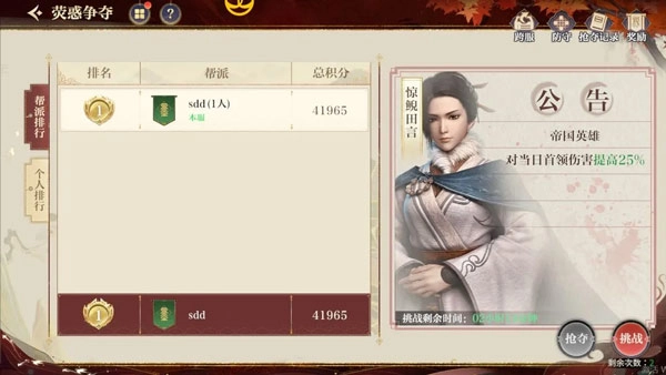 3、每天19点-23点为个人抢分阶段,只有参与首领挑战阶段才能进行抢夺