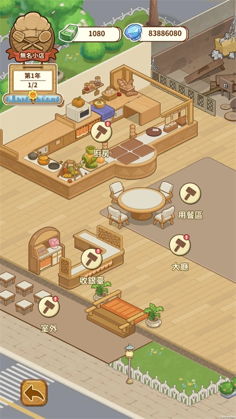 2、在游戏后期,随着玩家的餐馆声誉的提升,玩家也需要不断升级自己的店铺,游戏中各种家具供玩家选择,玩家可以将店铺装饰成自己喜欢的样子。