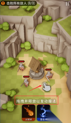 2、拖拽火球或雷击图标攻击敌人,完成击败任务。