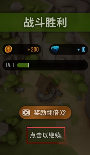3、点击红框按钮领取金币和钻石奖励并继续。