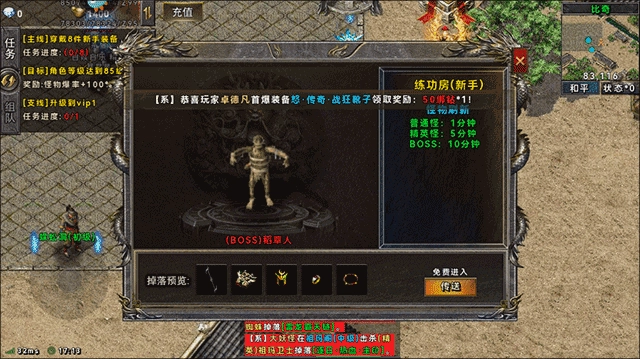 7:世界BOSS(每天19:30~19:50),获得魂石,场景中不能PK。