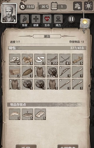 掠夺者营地很肥务必推掉,时间很充裕可以一天推一点。本关结关需要活18天,打完所有点之后每天就是找威利换石片,然后隔几天走一遍资源点。如果觉得食物压力大,请在推完营地后给二号人物断粮