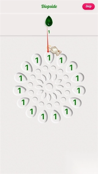 1、选择图案后进入关卡,长按上方的钻石,拖动到下方1的位置。