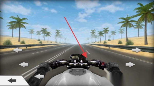 2、进入公路驾驶界面后,可通过操作摩托车把手(对应画面中车把位置)来控制行驶方向,适应公路骑行的操作手感。