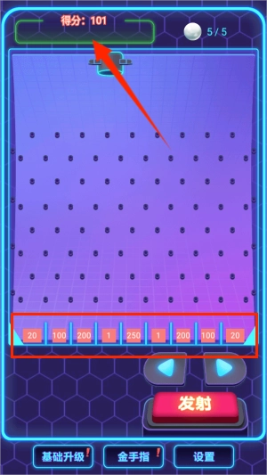 3、底部计分板实时统计球球落点,每个成功掉落的球体都会转化为相应积分。