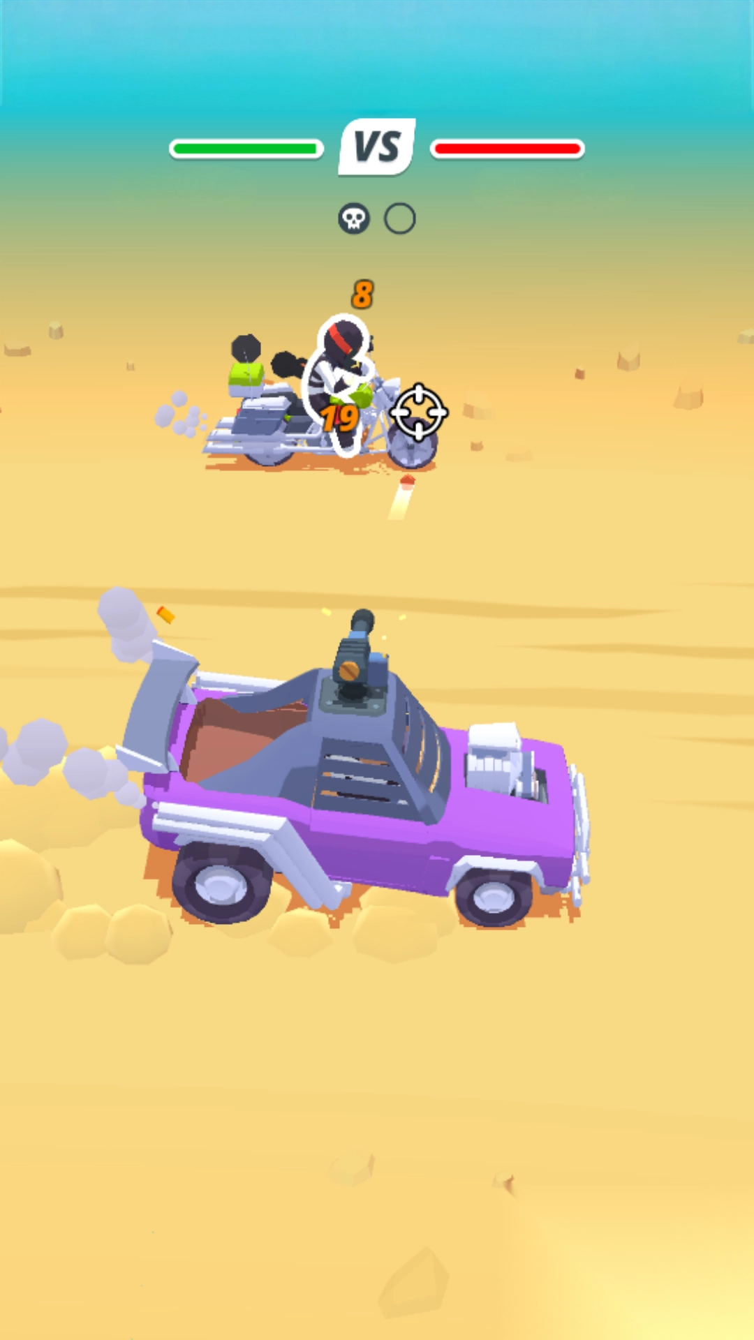 1. 驾驶跑车驰骋于沙漠赛道,借助车载武器向敌方车辆开火,同时躲避对方攻击,力求抢先冲过终点线。