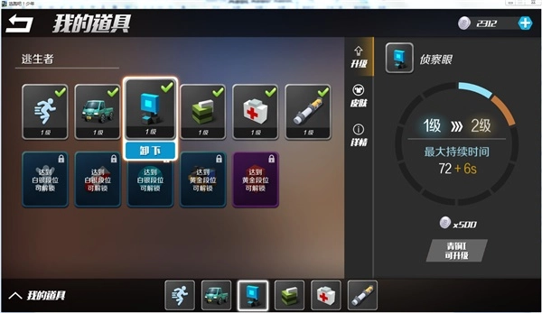 目前到达白银段位可以解锁“跳高”、“生命上限”和“雷达”三张道具卡,黄金段位可以解锁“巡逻犬”和“阻挡箱”两张道具卡。