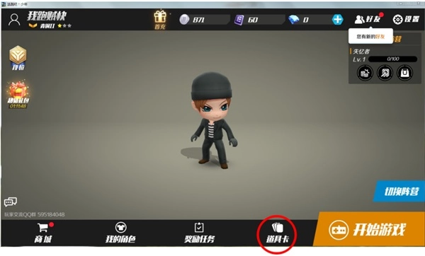 道具卡的选择和更换可以在两个界面操作,第一个是游戏主界面。