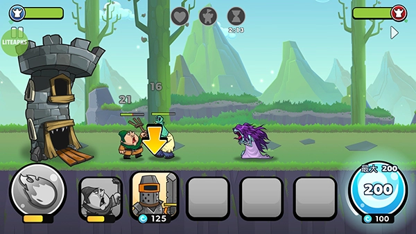 3、通关时,首先要制造一个初始小兵,让它去扛一会儿伤害。接着,大力升级加速能量(也就是制造小兵所需的能量)。之后,再制造一个像骑士这样能扛伤害的肉盾继续扛伤。随后继续升级能量,只要拖到升级能量条满,就能快速制造小兵。到了后期,凭借快速制造能量的优势,便可直接通关。因为后续小兵会源源不断地制造出来,能量也会持续不断地增加。这是一个极为实用的策略,我靠这种策略从新手成长为大神,它实不实用,你们可以亲自尝试一下。