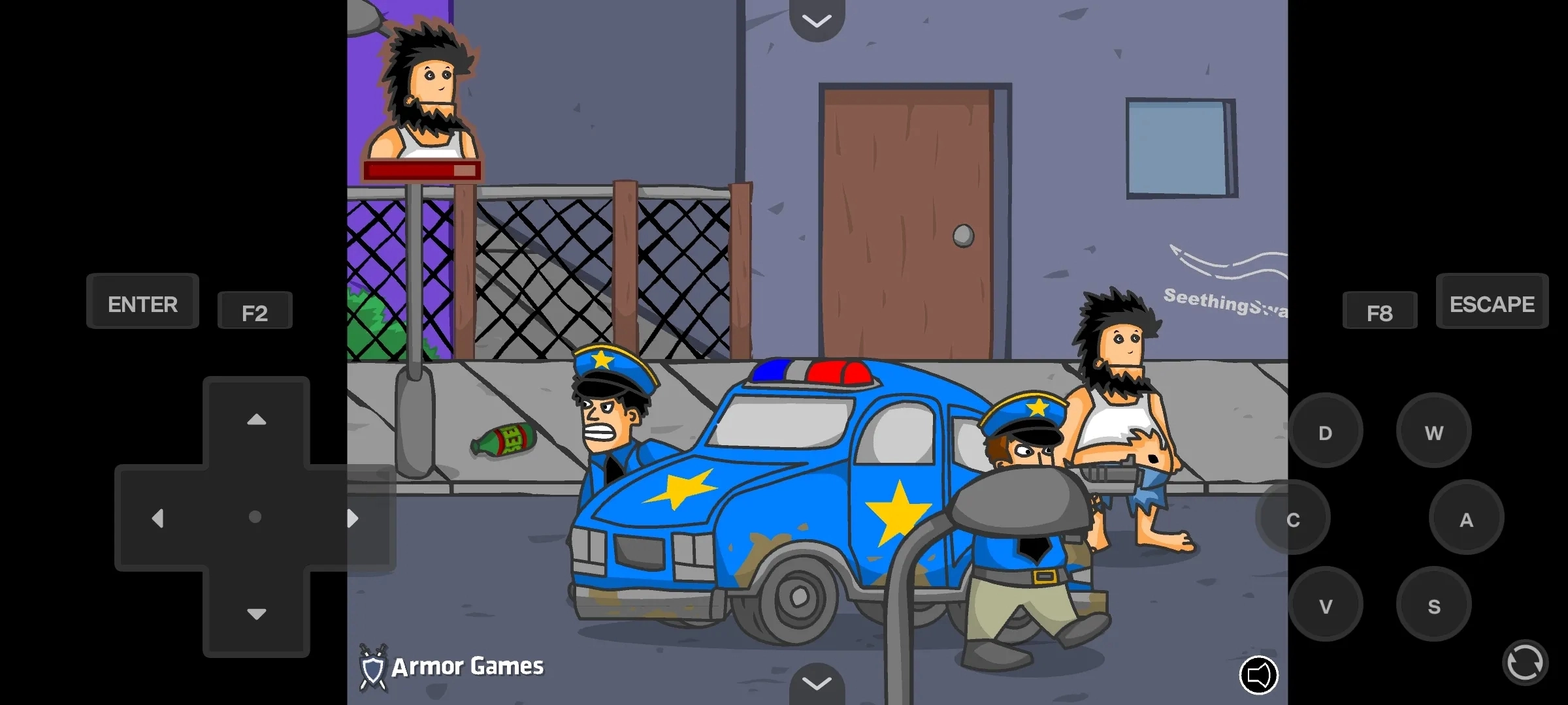 在趣味横生的垂直平台游戏《无敌流浪汉3:通缉令》里,你要扮演一名遭人嫌弃的流浪汉,在危机四伏的城市景象中穿梭。主角可不是那种讨人喜欢的英雄,然而他却很懂得怎样制造混乱并从险境中脱身。你能够运用诸如腹部撞击、拳打脚踢等各类招式去打败敌人,而且随着游戏的推进,还能解锁打嗝、放屁等特殊动作。除此之外,你还可以投掷垃圾桶、瓶子,甚至动用枪支来消灭敌人。你的终极目标是寻觅一个静谧的休息之地,但你得击退成群结队的敌人,才能抵达那里。