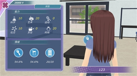 2、游戏里的角色具备状态数值,具体包含艺术值、科学值、运动值、烹饪值、时尚值、社交值以及亲密值。其中,艺术值、科学值、运动值、烹饪值、时尚值和社交值能够借助完成各类目标或者更换服装得以提升,而亲密值唯有通过与女友互动方可获取。在剧情模式中,决定结局的一个关键要求便是亲密值达到150 。