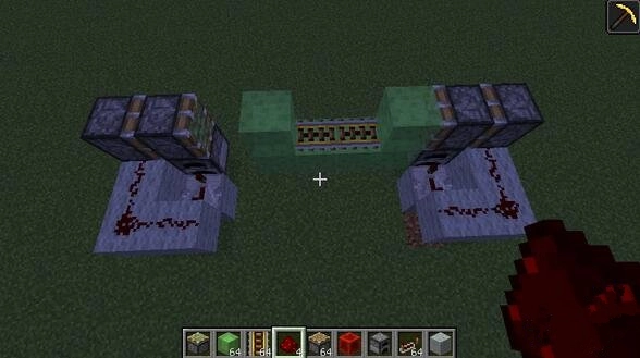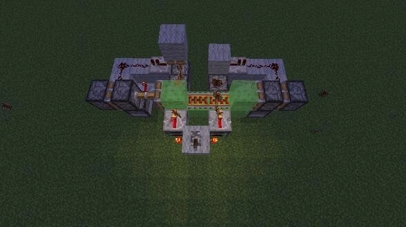 3、注意第1个活塞下面是熔炉,放在被粘液块拉走