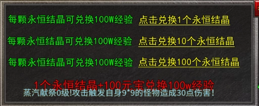 装备超好打,回收就能得元宝。全区全图到处都是大量实物狂暴。而且还能在实物兑换处,使用永恒结晶来兑换经验。