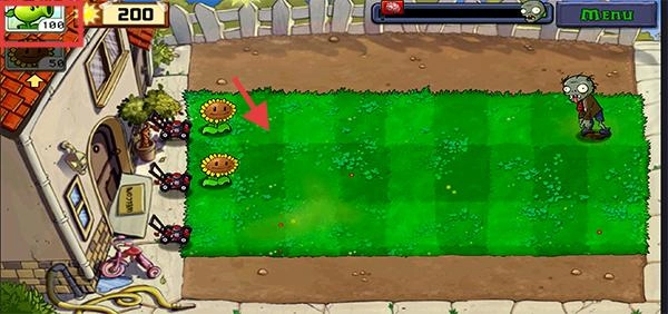 3、把豌豆射手这类攻击型植物拖到僵尸的行进路线上,搭建出具备交叉火力的防御阵型。