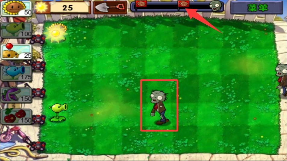 4、借助植物的自动攻击来减少僵尸的数量,当底部的进度条达到满格状态时,就意味着成功通过此关。