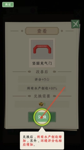 8、别忘记兑换充气门,如此能够推动水产收益的升级。
