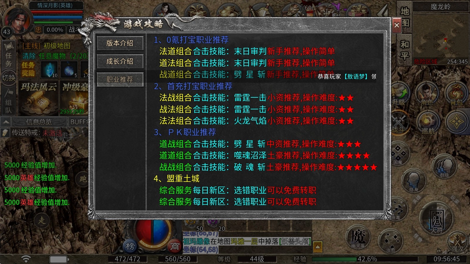 3、法法组合所拥有的合击技能为火龙气焰,比较适合小资玩家选择,其操作难度为两星。