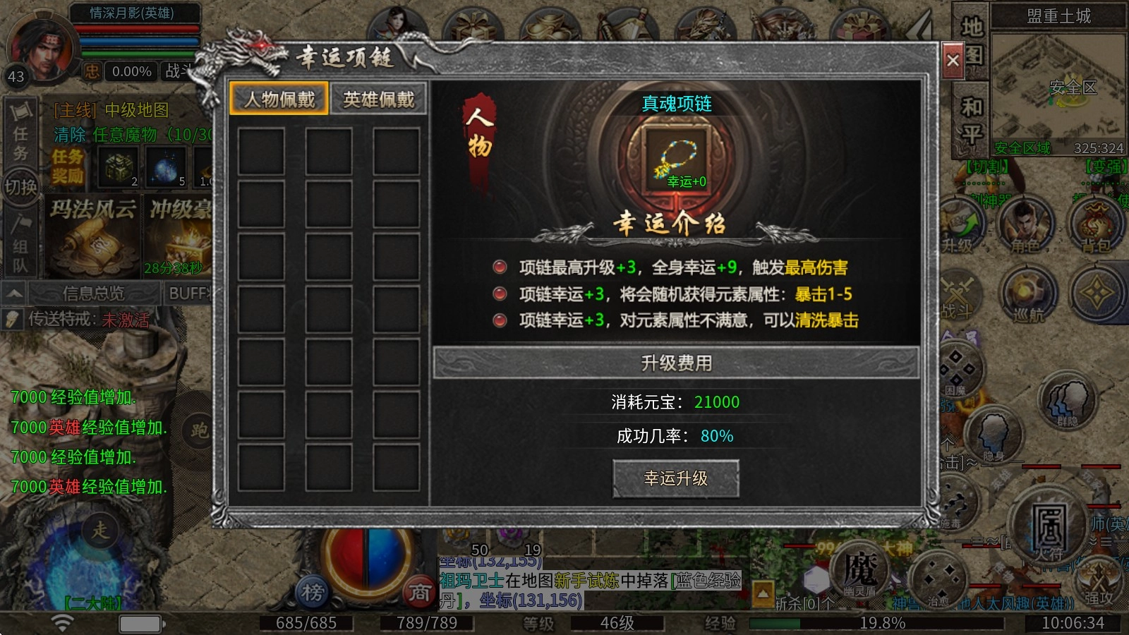 5、幸运项链:此项链最高可升级至 +3 。佩戴后,能让角色全身幸运值达到 +9 ,助力触发最高伤害。当项链幸运值为 +3 时,还会随机赋予元素属性(暴击范围在 1 - 5 之间)。要是对所获得的元素属性中的暴击数值不满意,可进行暴击清洗操作。