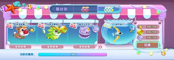 两个集市所对应的鱼儿有所差异,然而玩法却是一致的,均是借助获取等级相对较低的鱼(亦可称作基础鱼)来产出鱼宝,利用所得到的鱼宝去兑换等级相对较高的鱼,依此方式不断推进,最终获取 sss 顶级鱼。
