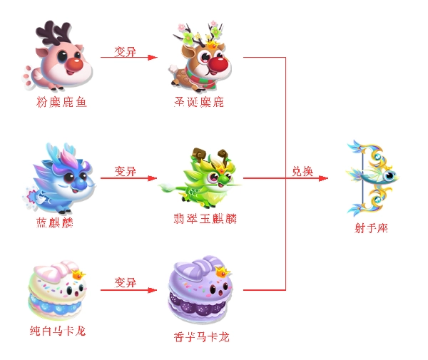 变异出一只圣诞麋鹿、一只翡翠玉麒麟以及一只香芋马卡龙后,马上着手饲养,等待它们产宝,以此来兑换射手座。要是想更迅速地获取射手座,选择立即产宝是最优途径!
