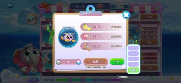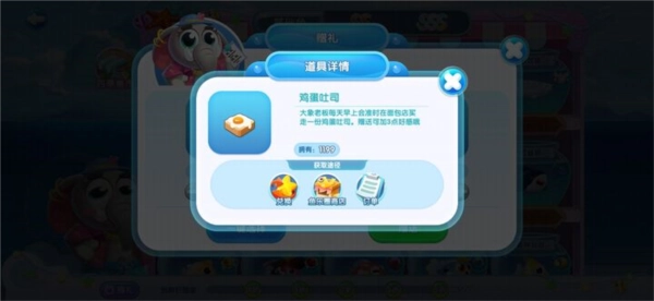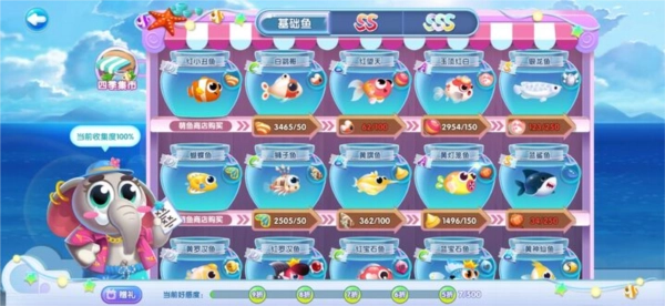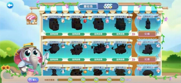 此外,细心的馆长或许已经发现集市下方的大象先生了,他可不是个简单的摆设。点击下方“送礼”,给大象先生送上礼物,就能赢得他的好感度。当好感度累积到一定程度,在集市上换取鱼儿时就可以享受折扣啦。至于礼物获取方式,可在道具详情界面查看。在萌鱼泡泡里,获取礼物的途径多种多样,除了上述提到的方式,出游时的宝箱也有几率开出大象先生的礼物哦。