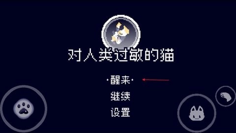 1、开启《对人类过敏的猫》这款游戏后,首次玩该游戏的玩家点击【醒来】就行。