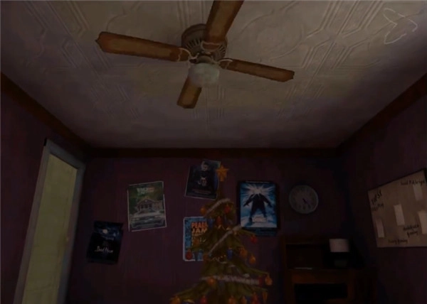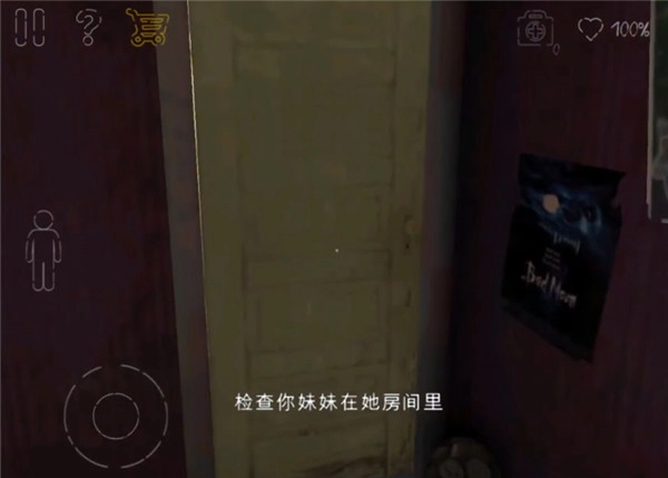 出门后,走进并打开另一个房间的门,接着下楼。到达二楼后,径直前往厨房,在那里能看到一个手电筒。从厨房转弯出来,点击正对着厨房的门,即可触发剧情。