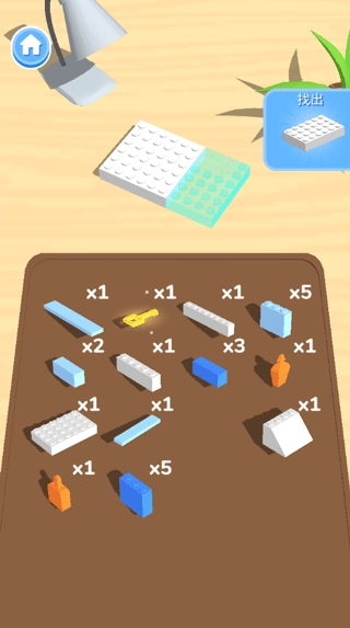 4、游戏新手阶段,系统会在界面右上角提示需要拼接的物品。新手阶段结束后,则需依据物体上的虚影提示来操作。