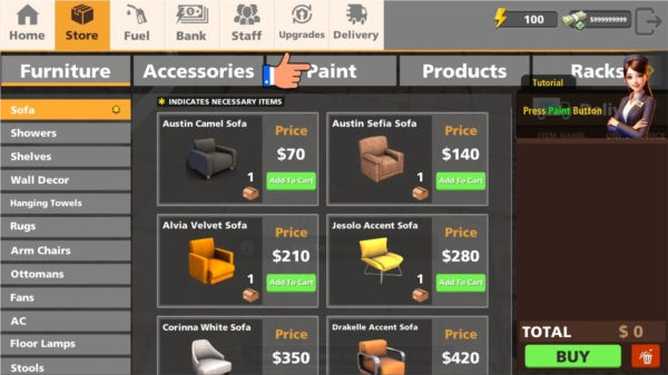 11. 轻点右侧购物车图标,即可购买旅店的家居等各类物品。