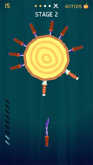 2、很简单,只要不碰到飞刀就行,左下角显示的是我们需要飞出的数量。