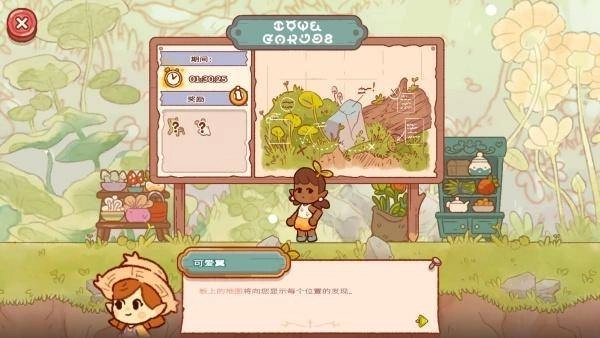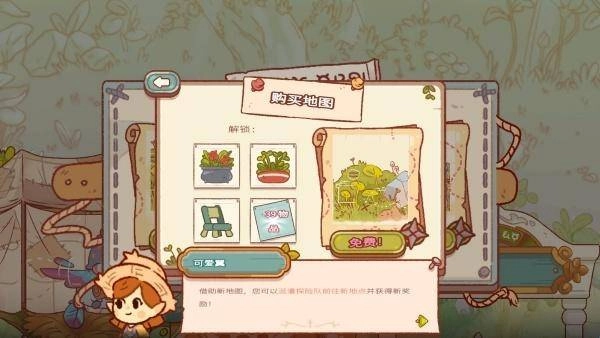5、接下来就能够去探索森林啦,不过在此之前,你得向这只小鸟购买一张地图。第一张地图是免费的,购买之后会解锁全新的家具物品。