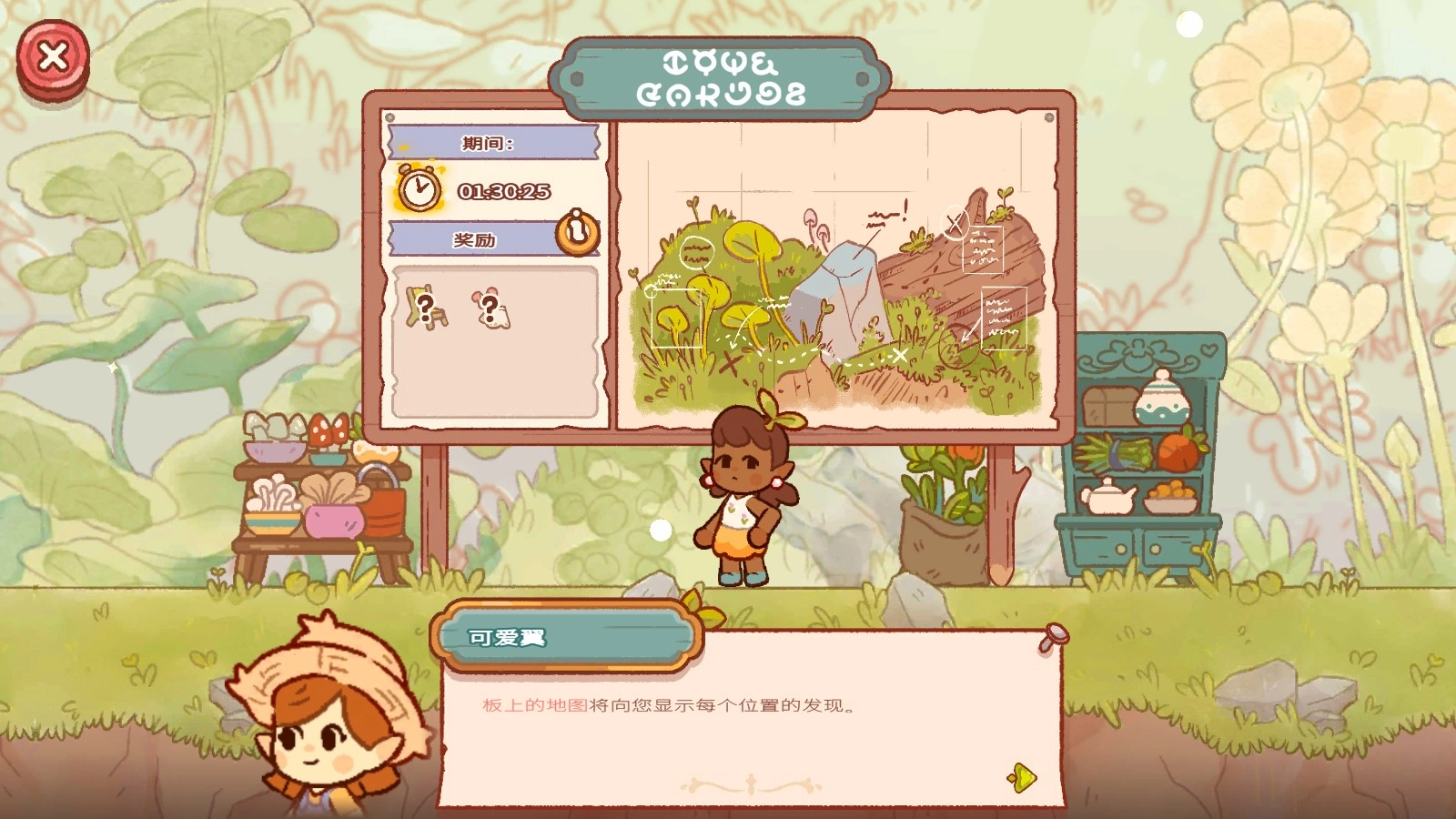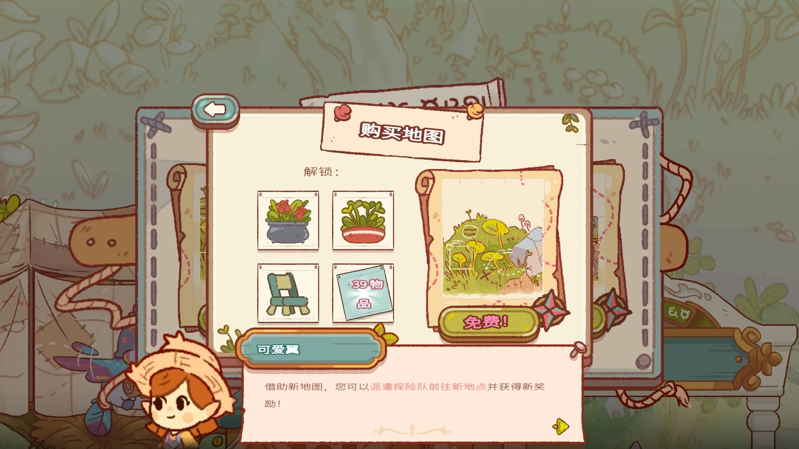 5、接下来便可以开启森林探索之旅啦,不过在此之前,得去找小鸟购买一张地图。首张地图是免费的,购买地图后会解锁更多的家具与物品。