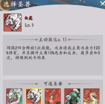 圣兽选择建议:首选携带白虎,若白虎不适用,次选毕方。