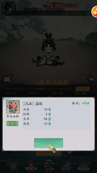 2、成功解锁灵兽后,点击“上阵”选项,即可提升自身实力。