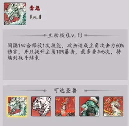 圣兽选择建议:首选携带青龙,若无法选择青龙,次选蛟龙。