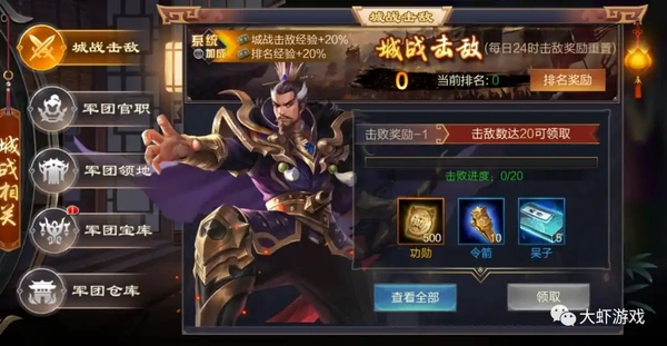 二、城战 除章节任务外,每日击杀也设有奖励。
