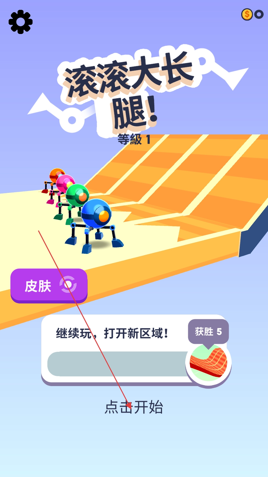 4、成功冲过终点后,点击【继续】按钮,就能获取金币,进而解锁新关卡进行挑战。