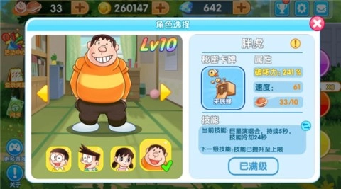 5、每个角色都拥有专属技能,比如大雄的技能是可以复活一次。