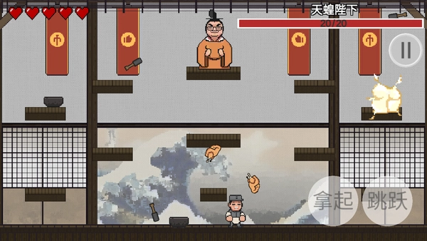 5、游戏操控方式十分简单,通过滑动就能控制方向,同时设有拿起和跳跃按键。