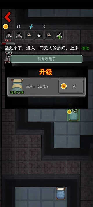 游戏首次升级床需要25金币,升级时机是最后倒计时5秒的时候,因此我们只要在这之前上床,经济就不会落后他人。