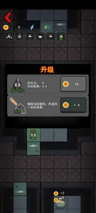 6、游戏开始时,首先对门进行升级,随后建造炮台。