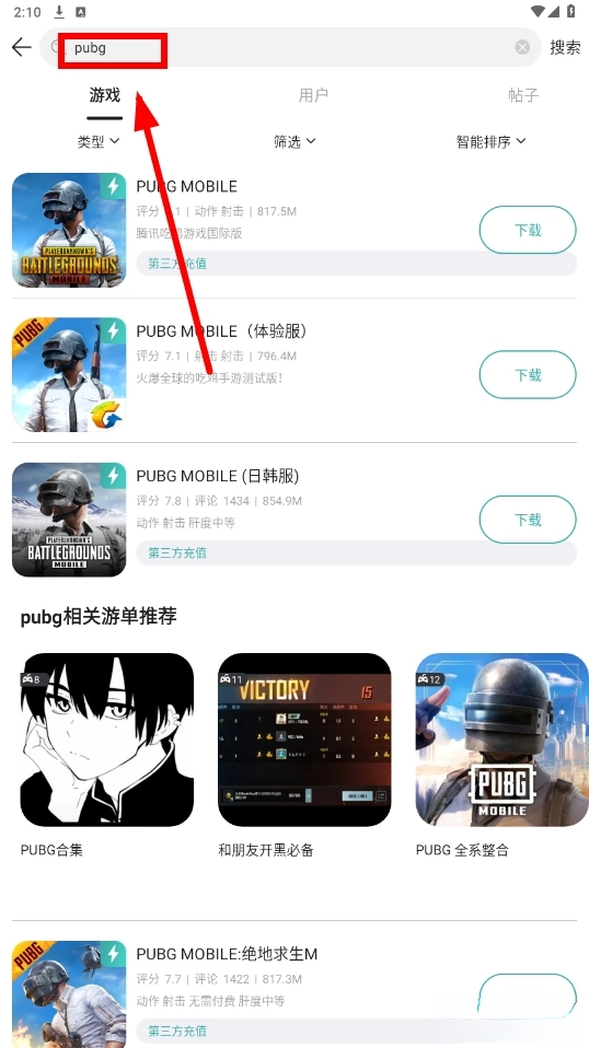 在搜索框中输入自己想要加速的游戏名称进行搜索,此处以pubg这款游戏为例。