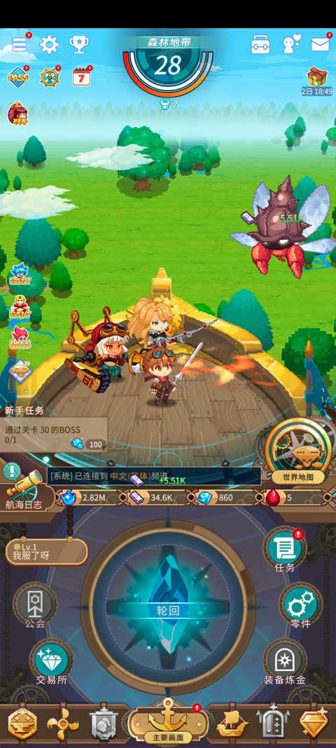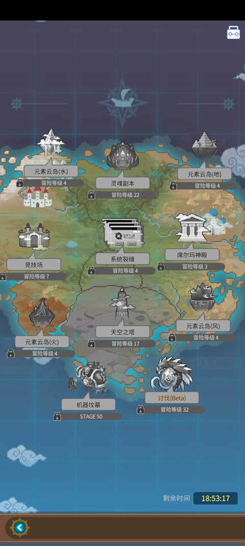 5、界面中心右侧为世界地图,当达到特定级别时,会提示你点击它前往另一处执行挑战任务。