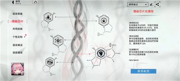 这里给大家推荐一套我个人偏爱的增益芯片搭配组合,分别是链式循环、击破兼并、绝境反应、转化汲取以及高热叠加。这套搭配相当暴力,在团战中用于收割简直无敌。
