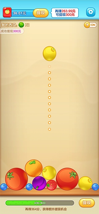 4、玩家需看准位置让水果降落,入门简单有趣,快速合成也更为便捷。