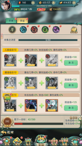 2、收集相同组合里的神兽,就能激活图鉴值。而搭配上阵的羁绊神兽,更是能提升你的战斗属性,让敌人插翅难飞!