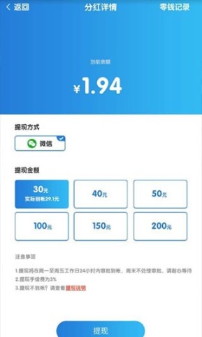 4、只要确认当前余额满足提现条件,就可以畅快地提现,轻松领取你的奖励。